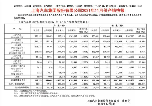 基于这个背景,大部分车企的11、12月销量数据会好于平时,作为自主龙头的上汽集团自然也不例外。