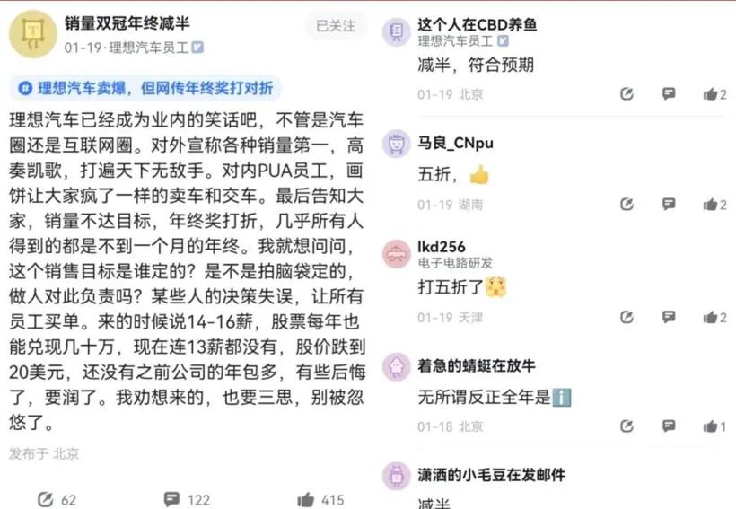 与大家印象不同的是,不只是销量下滑的传统车企在通过裁员等方式来降本,处于上升期的新势力同样需要应对人数暴增带来的组织架构调整,李想在微博透露,目前逼近2万人的理想汽车团队正在全面学习华为的组织架构和流程,而一年前,这个数字还是1.2万。
