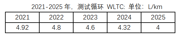 2021年7月1日,由NEDC切换WLTC后,整体油耗数值将会提高,而2025年油耗目标不变。单靠燃油车是不能实现油耗目标,需要促进混合动力汽车和新能源汽车发展。