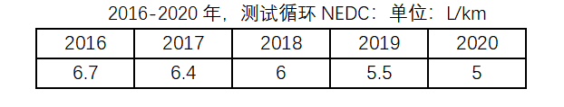 根据《汽车产业中长期发展规划》,2020年后,乘用车新车平均油耗降低至5.0L/km, 节能型汽车平均油耗降低至4.5L/km。2025年后,乘用车平均油耗降低至4.0L/km。