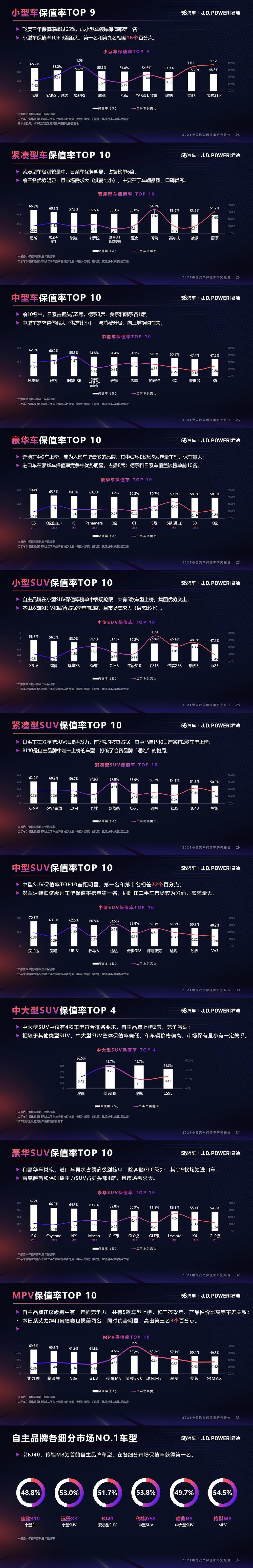 随着汽车市场竞争加剧、消费者购车愈发理性,越来越多消费者在购买新车和二手车时开始将保值率作为重要参考指标。为了给消费者提供更为直观、精准的购车参考,J.D. Power(君迪)联合58同城新车业务58汽车发布《中国汽车保值率研究报告》(2021年10月),从厂商、国别、品牌等多维角度展现近一年国内二手车交易市场现状及保值率情况。