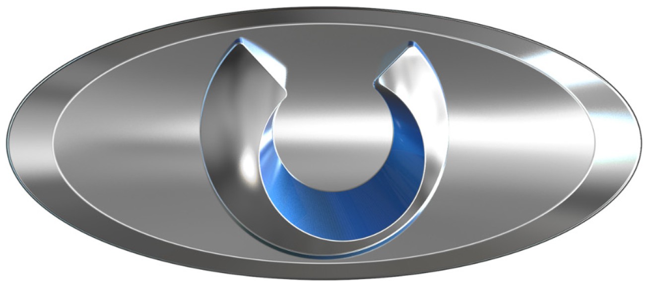 如下图所示,这次百度的新车标是一个蓝内银外的立体不封闭圆弧,乍一看和腾汽车的车标有点相似。