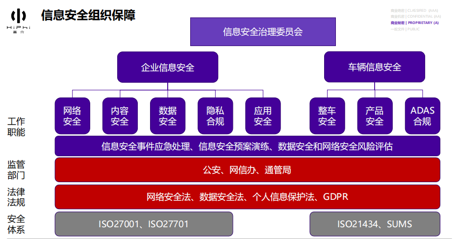 从体系层面来讲,我们还是遵循ISO 27001和ISO 27701,华人运通在去年8月取得了双认证,体系涵盖公司所有的职能部门和中国所有的SET,包括工厂、门店和交付中心。